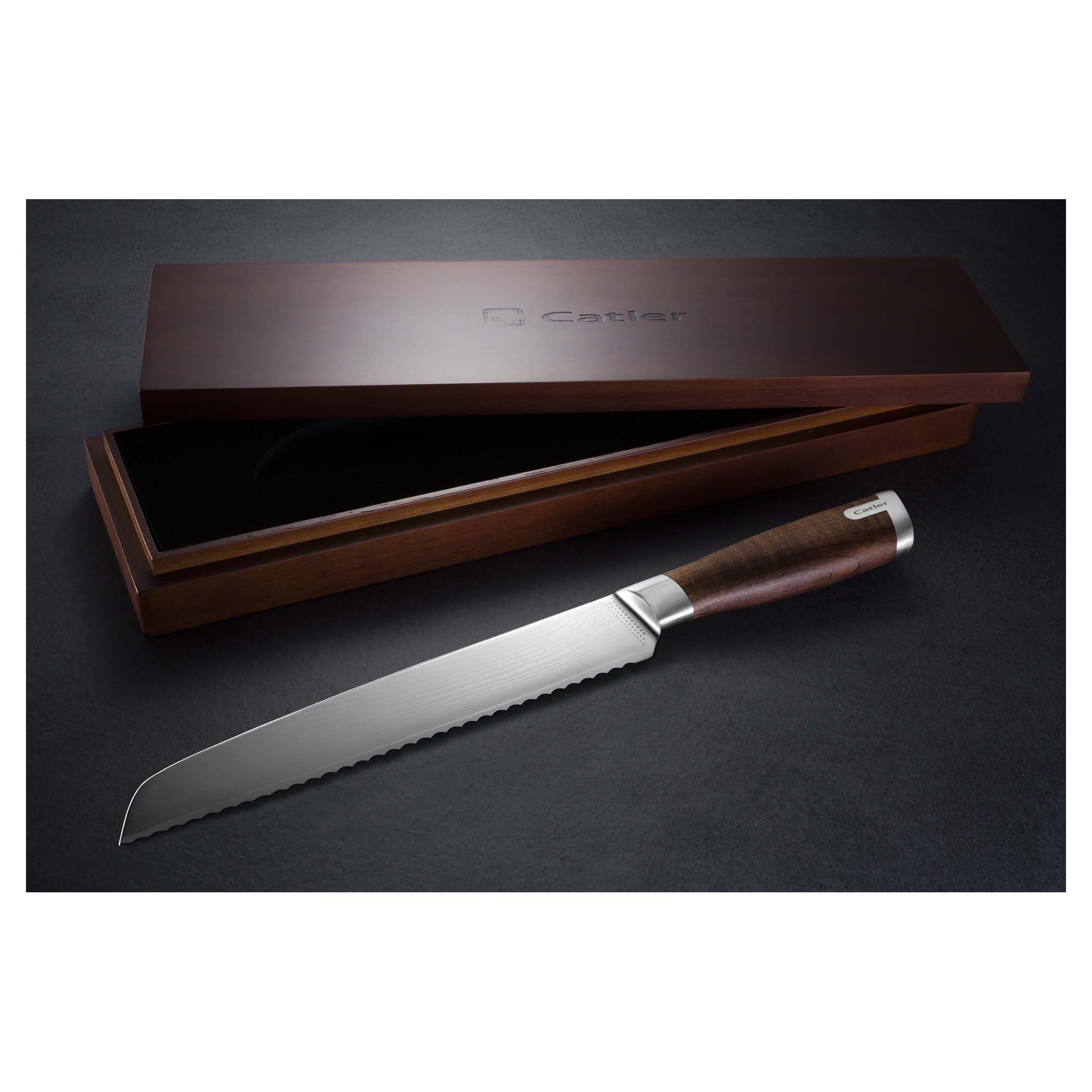 This Japanese bread knife has a characteristic long serrated blade. Thanks to its serrated edge, it easily slices very crispy bread or baguettes without pushing down the crumb and crushing the crust. Ergonomic anti-slip handle for safe and comfortable work.