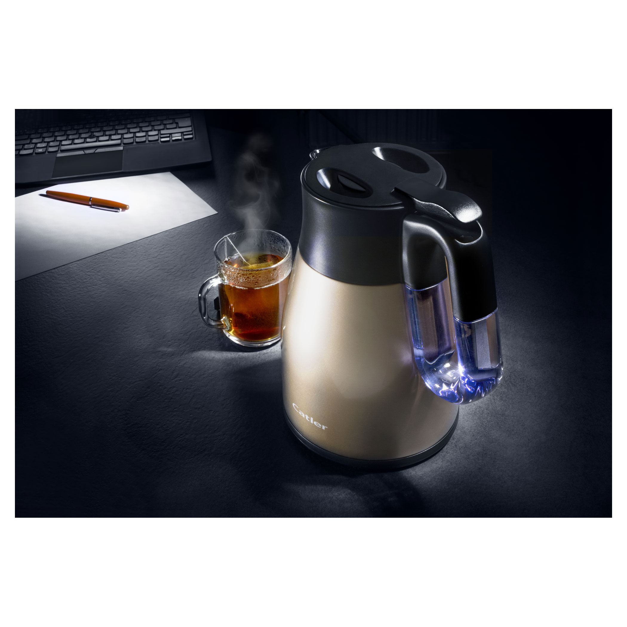 This variable temperature electric kettle provides an intelligent solution for boiling water every day. It is a kettle and a vacuum flask in one. The electric kettle will quickly boil the water and thanks to a vacuum layer the vacuum flask will keep it hot for several hours.